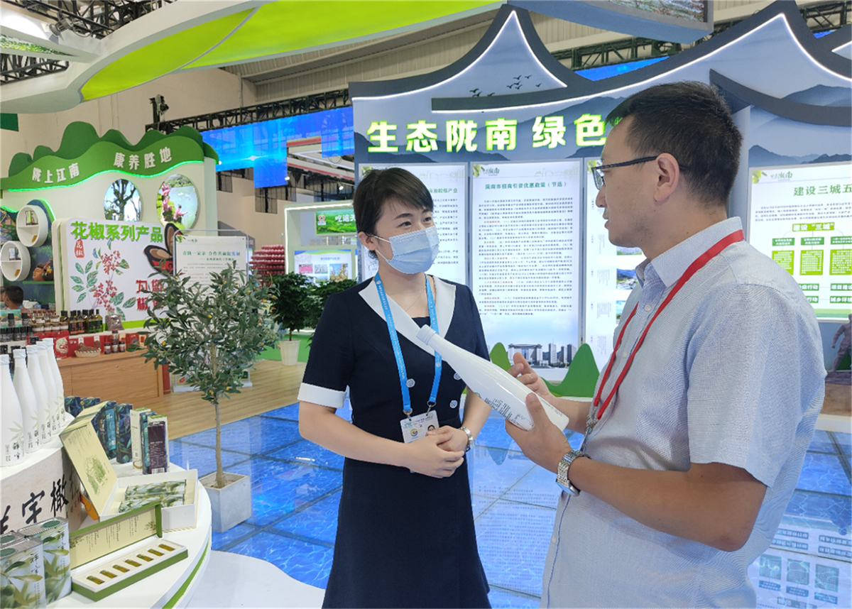 省市領(lǐng)導(dǎo)走進(jìn)隴南館,祥宇公司董事長劉玉紅邀請各位領(lǐng)導(dǎo)品鑒了祥宇系列產(chǎn)品,