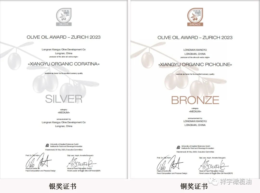 祥宇選送的特級(jí)初榨橄欖油在10個(gè)國(guó)家126個(gè)樣品中獲得1銀1銅的好成績(jī)。